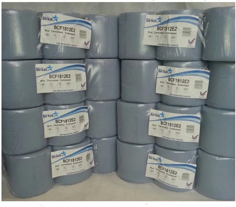 Active Blue Value Centrefeed Paper Tissue 6 Roll Pack. Active Blue Centre Feed Embossed Tissue Paper 6 Roll Pack Strong, absorbent & versatile Value multipurpose industrial 2ply paper Colour: Blue Laminated embossed Length per roll: 60m approx Sheet dimensions: approx 185mm x 175mm Roll diameter: approx 175mm Great for high usage washrooms bathrooms due to the quality and longer life span of the rolls Also suitable for cleaning, hand towel Made in the UK Packed in transparent plastic wrap Made from recycled materials For pallet order please add 77 Units to your basket 1 Pallet = 77 Cases (77 x 6 Roll Packs) Please click here to see all pallet deals We also supply in larger volumes such as full trucks, half trucks and container loads Barcode: 5060201031475