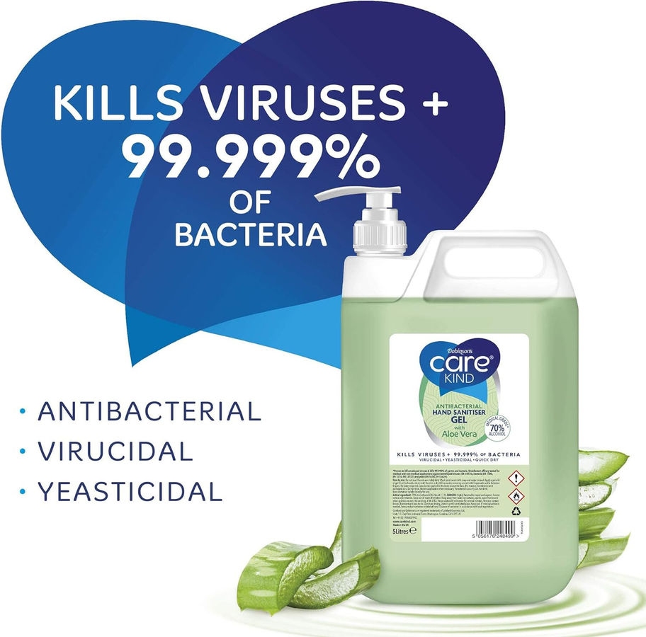 70% Hand Sanitiser Gel 5 Litre with Aloe Vera Extract Kills 99.999% of Bacteria