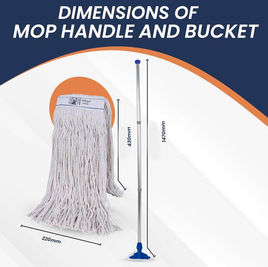 - [Effortless Assembly & Compact Design] The Aluminium handle's robust construction complements the cotton mop heads' quality stitching, making the kentucky mop combination a powerhouse in floor maintenance. Crafted with precision and engineered for lasting performance, our commercial mop is a testament to strength and durability. Its compact design allows for hassle-free storage and transportation, making it an ideal choice for professional cleaners and households.