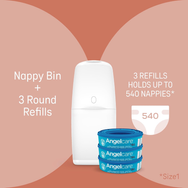 Angelcare Nappy Disposal System - Includes 3 round Refills - Push & Lock System