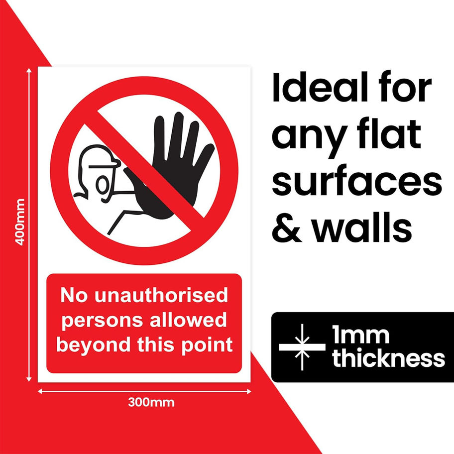 - WARNING SIGN: Safety Warning Notice to stringently warn unauthorized persons against going beyond particular parameters. No unauthorized persons are allowed beyond this point signs are posted on your premises to restrict access. This will help enforce workplace safety in your area
