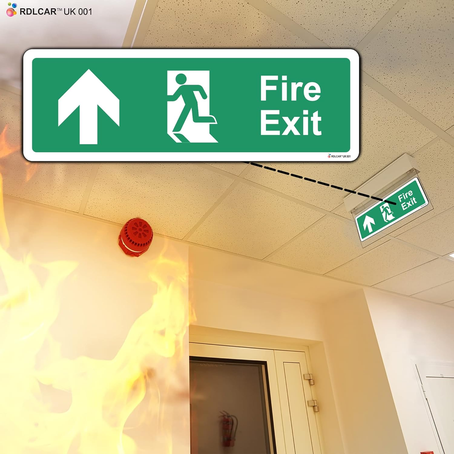 - WHERE TO PLACE: Install these fire escape sign in highly visible areas such as doors, stairs, ramps, hallways, or any exit points that lead to an area open to the public. These fire safety signs will help fulfill obligations to identify escape routes in the event of a fire emergency, making them a must-have safety protocol for all facilities.