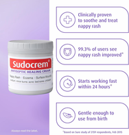 Sudocrem Antiseptic Healing Cream has been mum's simple, effective ally for over 85 years and is good for soothing sore skin and treating nappy rash and has been proven to reduce nappy rash rapidly. Always read the label.