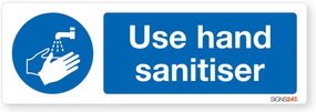 - Use Hand Sanitiser Sign - Self adhesive vinyl sticker 50mm x 150mm - Pack of 2