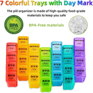 - ⭐WEEKLY PILL BOX 7 DAY⭐ Store a week's worth of meds. You can simply organize your weekly medication organizer at the beginning of the week and place the organiser on the counter to easily keep track and maintain your AM/PM medicine regimen.